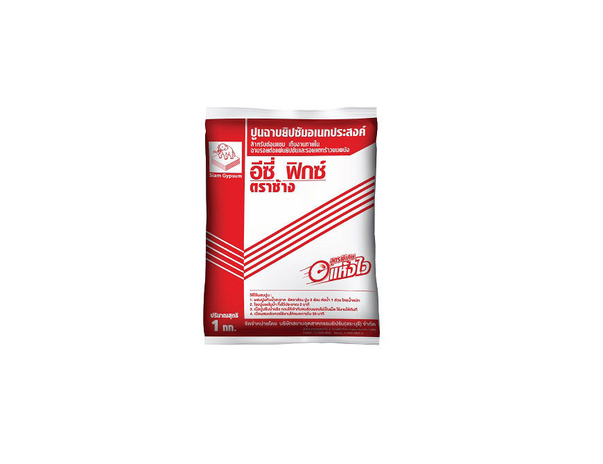 ปูนอีซี่ฟิกซ์ ตราช้าง (ฉาบอเนกประสงค์) สำหรับฉาบเก็บงานภายใน ตกแต่งผิวหน้า ซ่อมแซมรอยแตกร้าว สูตรแห้งเร็ว ผสมง่าย ฉาบลื่น ไม่ยุบตัว ปูนหลังแห้งตัวมีแรงยึดเกาะสูง ผิวเนียนละเอียด ไม่แตกร้าว ขัดตกแต่งง่าย